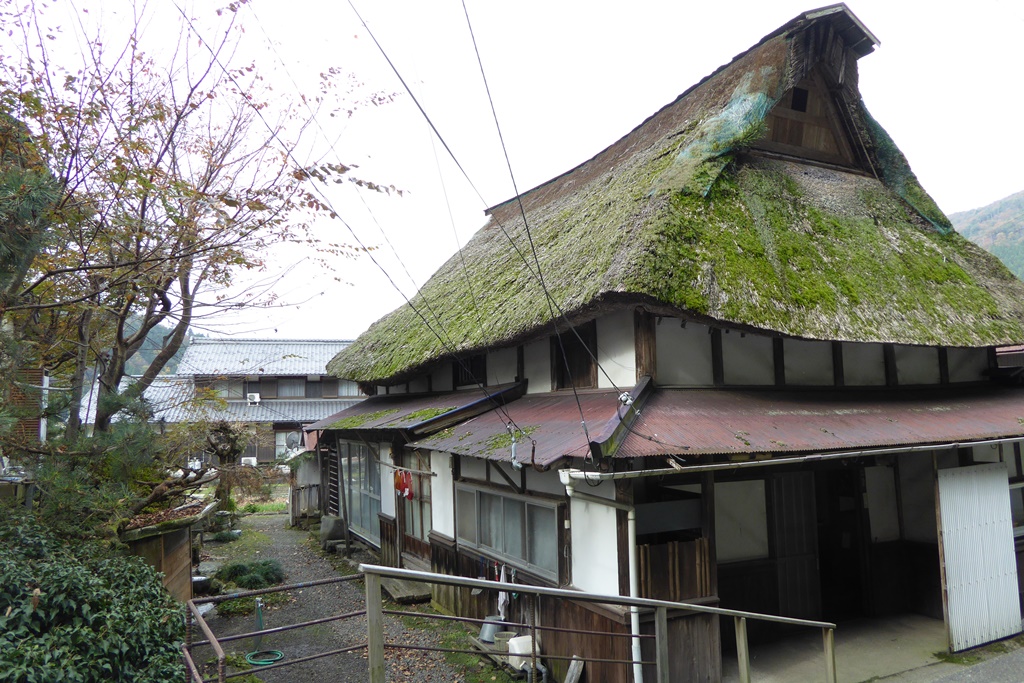 滋賀県ではよく見かけるトタンをかぶせた元藁葺きの家が並んでいる。