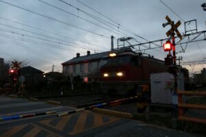 夕方、同じ場所を通りかかると、たまたま貨物列車がやってきた。