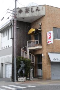 裸婦像が店先にある。Gaia 大地。元浜町、茶しん。
