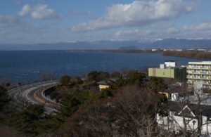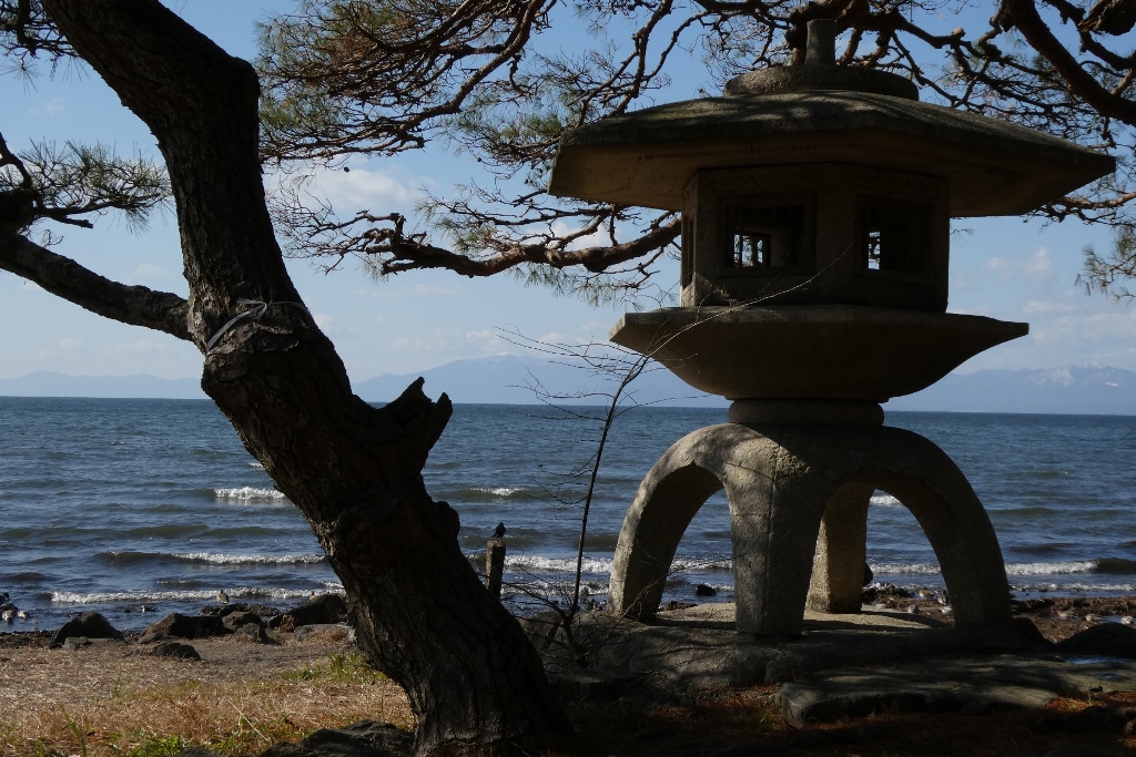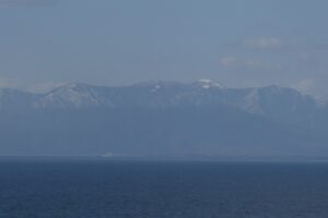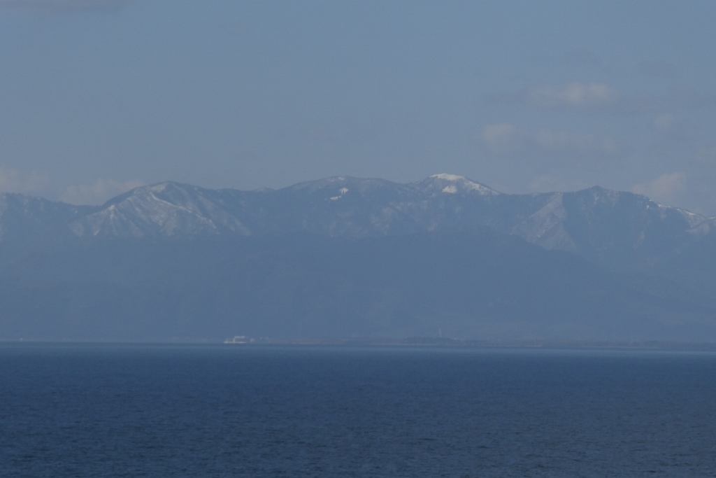 対岸の山は雪をかぶっていた。