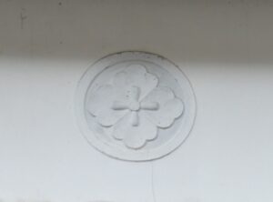 つし二階の壁の鏝絵が印象的だ。獅子と家紋でしょうか。