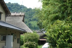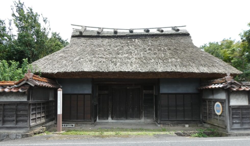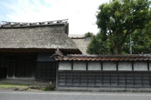 門と奥の主屋が藁葺きのまま残っている。