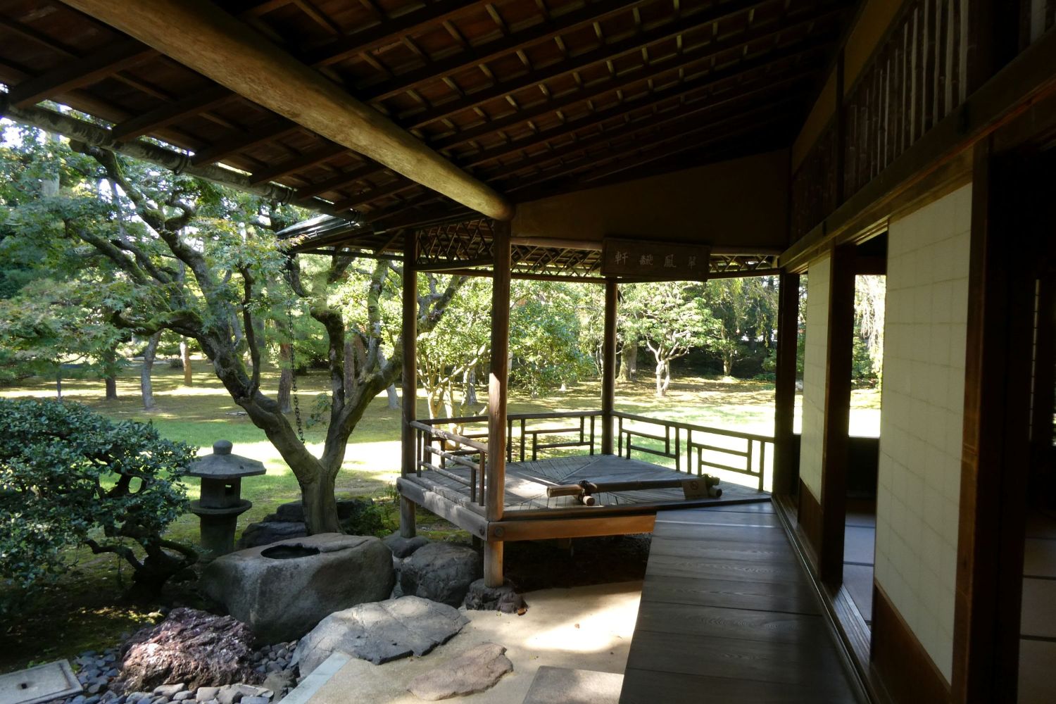 京都青蓮院のを真似た舟形の手水鉢