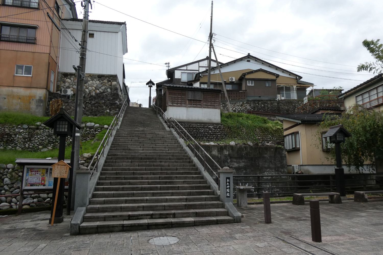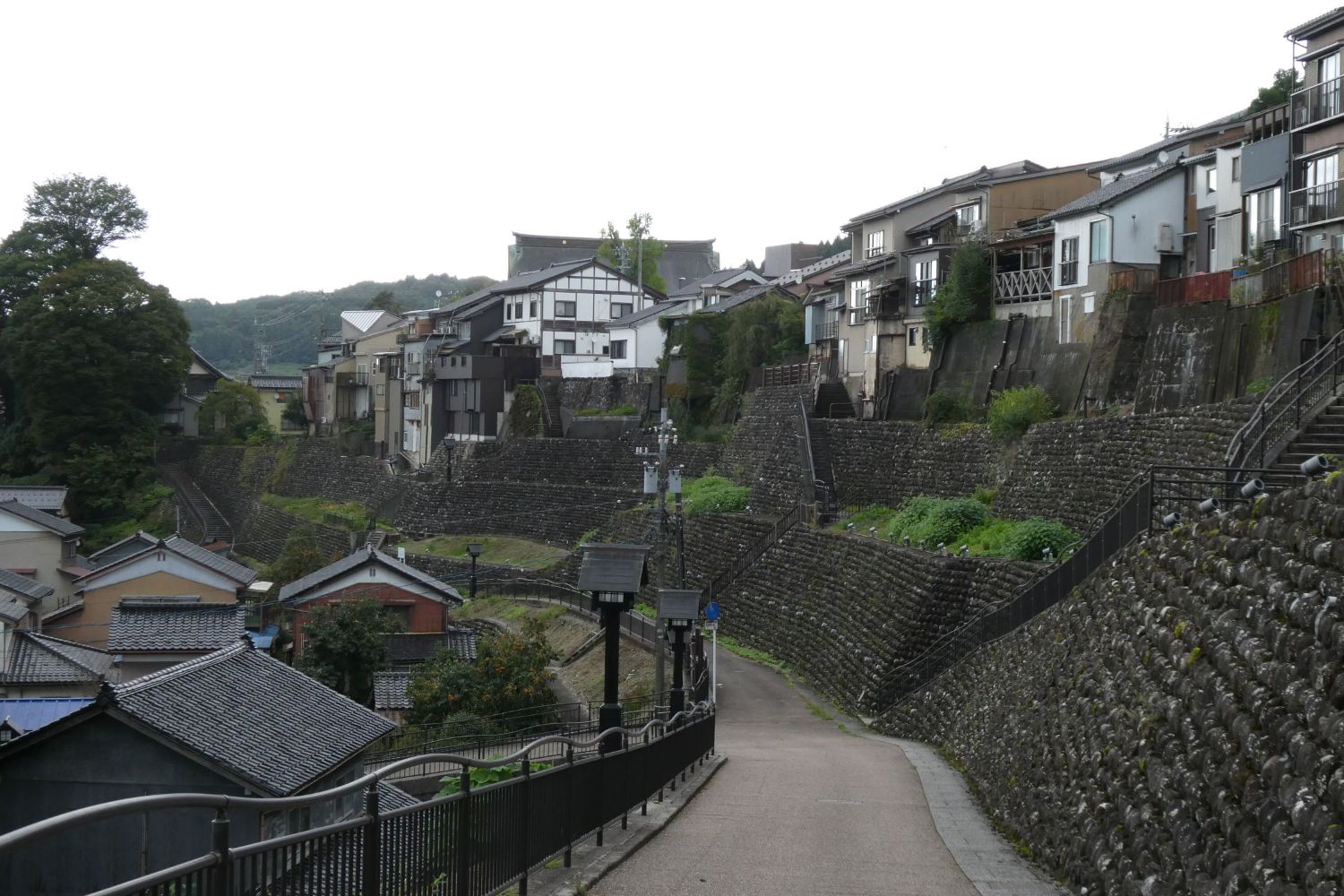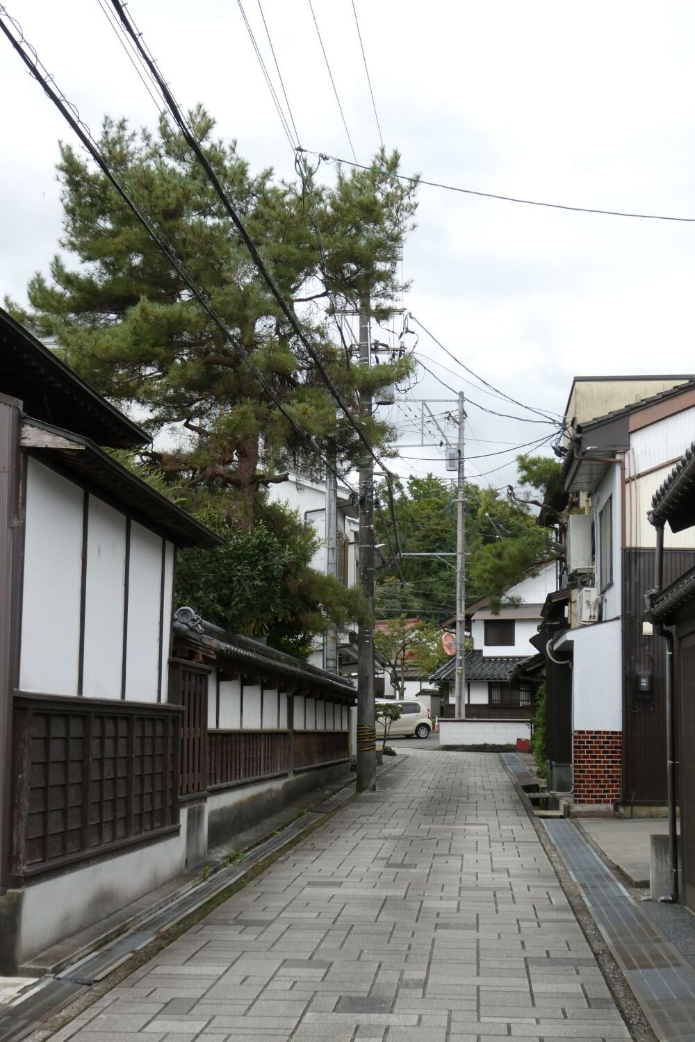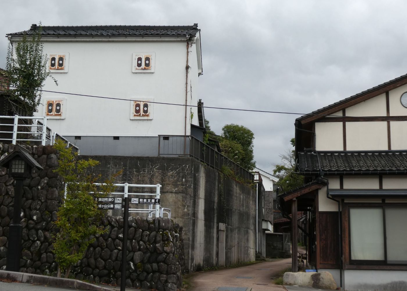 八尾町西町付近には高い石垣が美しく積み上げられている。水害から身を守るために高台に町を作った結果だそうだ。