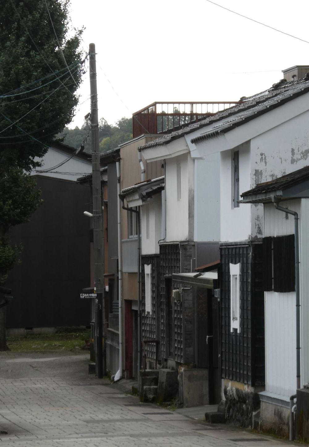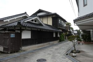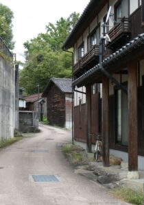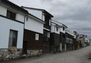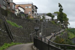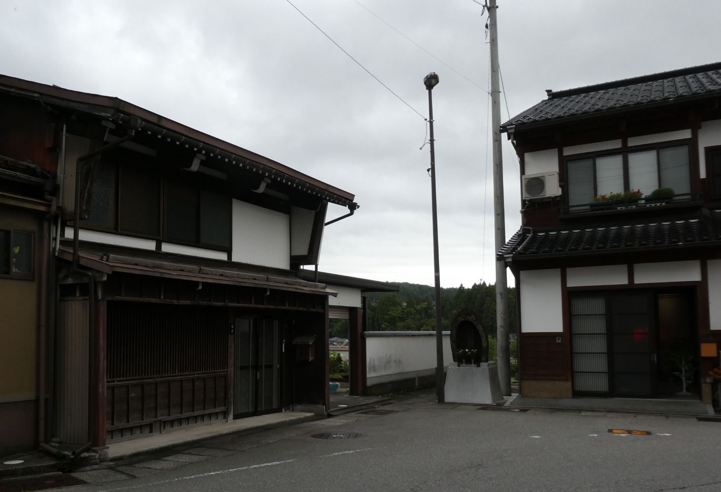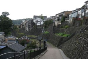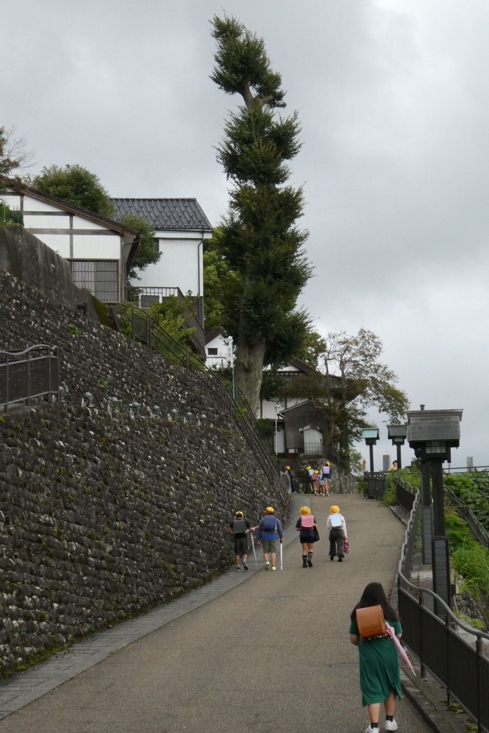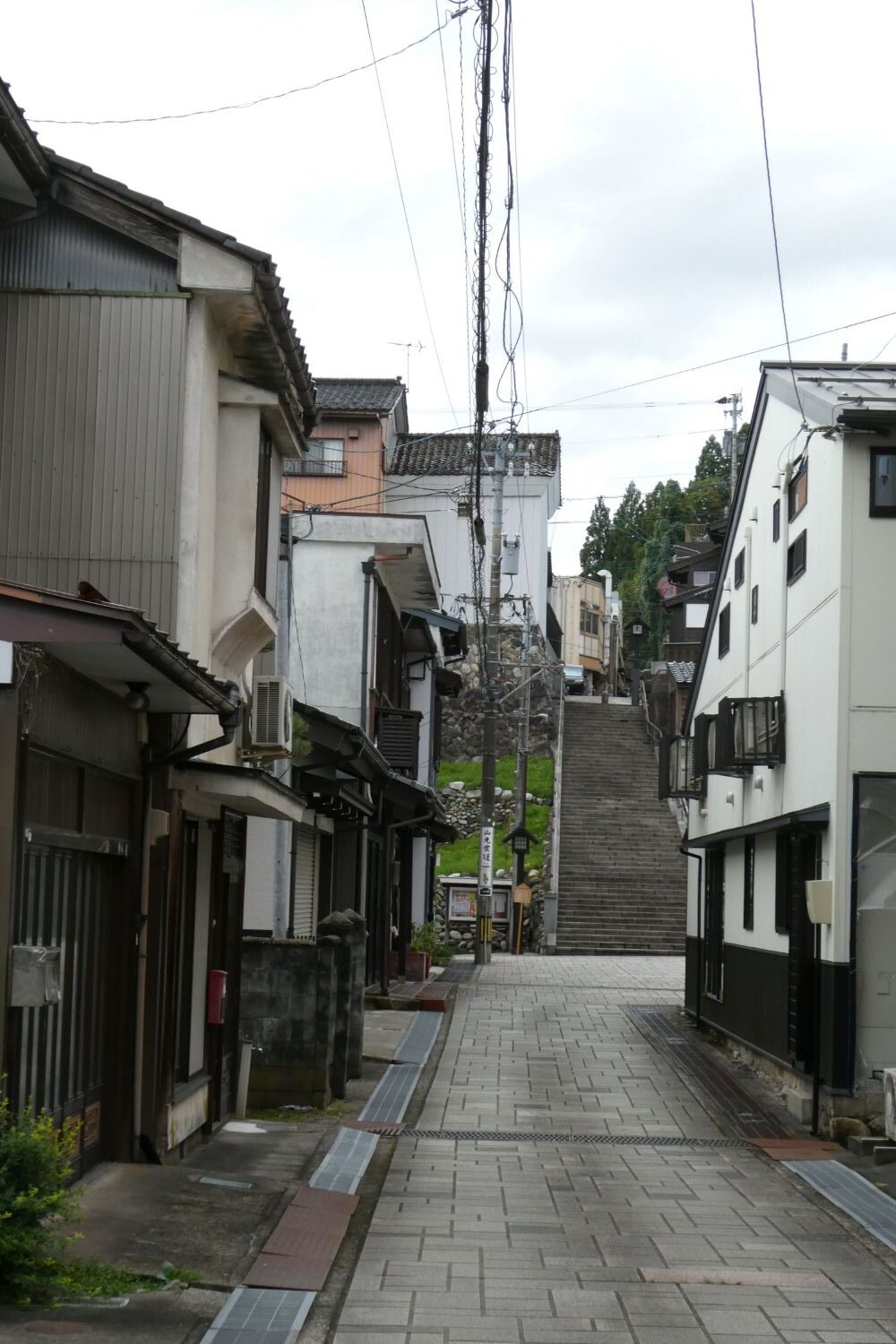 八尾町西町付近には高い石垣が美しく積み上げられている。水害から身を守るために高台に町を作った結果だそうだ。