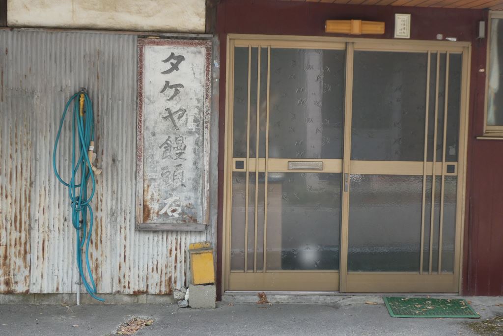 丸畑組。妻の壁に漆喰で書かれている。「野上二番」は野上町の名残り。その前の「テ」は何? 郵便番号の記号と同じだが辻褄が合わない。電話と言う意味なのは分かるが謎が残る。