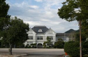 明治40年完成の旧遷喬(せんきょう)小学校。国の重要文化財として木造校舎が保存されている。